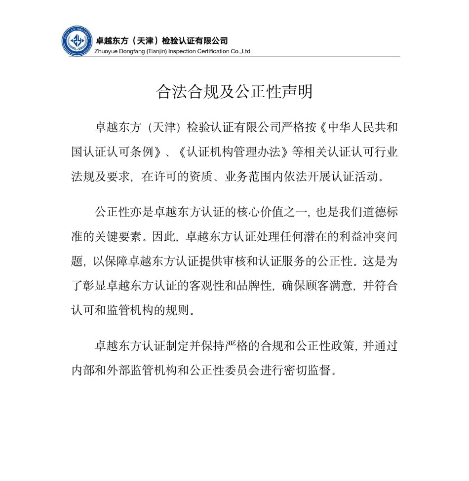 Zhuoyue Dongfang (Tianjin) Inspection Certification Co.,Ltd
