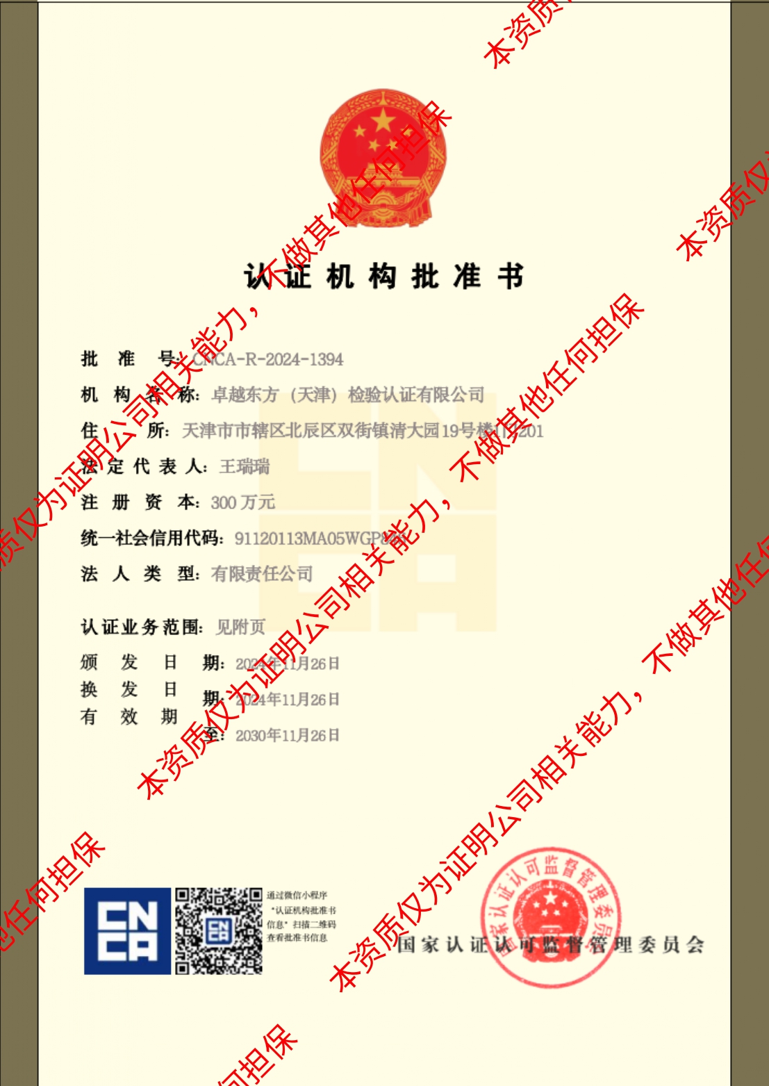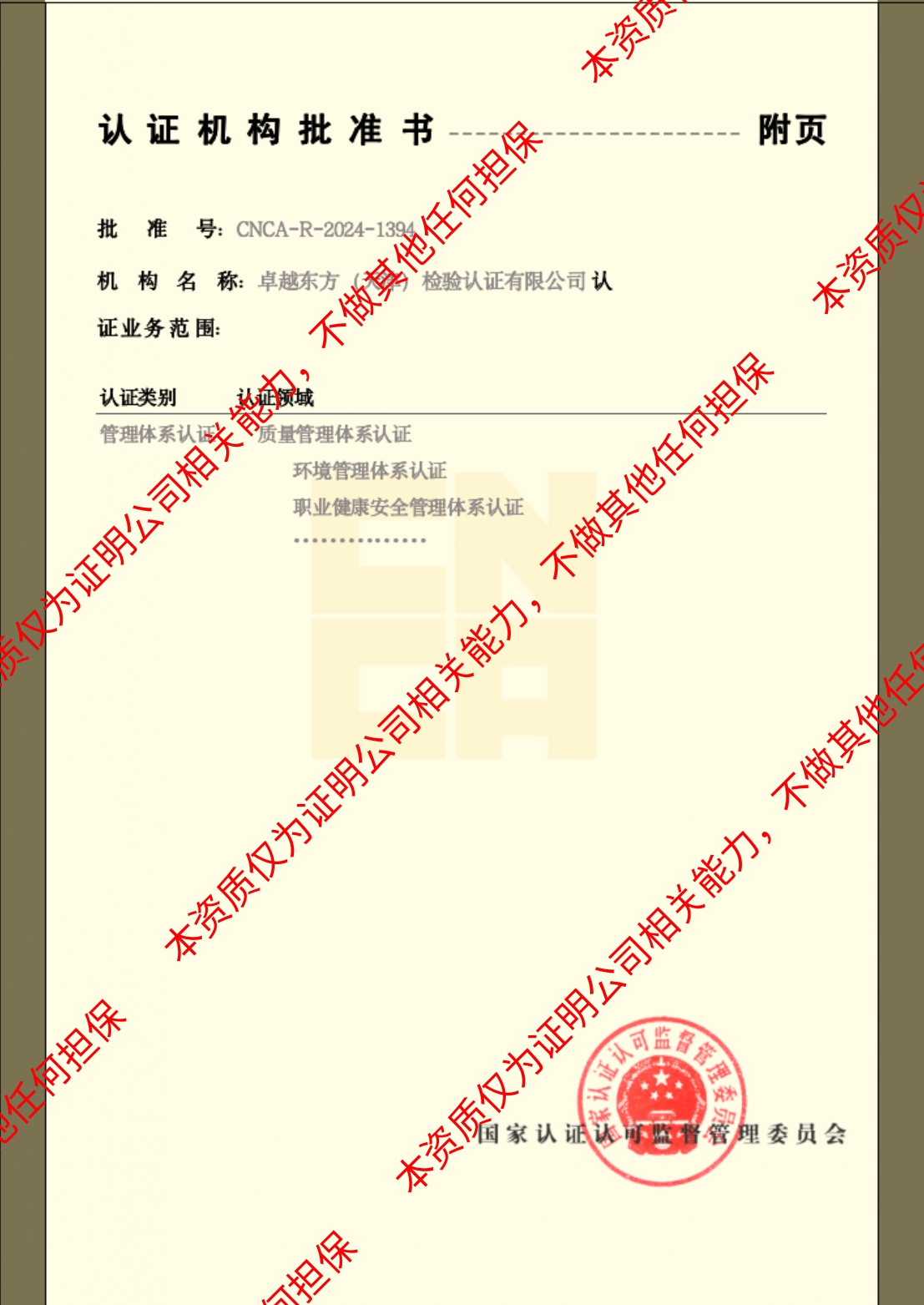 卓越东方批准证书